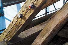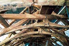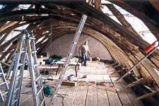 Der offene Dachstuhl lässt die parabolische Form der Deckenwölbung gut erkennen. Auch wurde deutlich, dass Dach und Decke mehrfach umgestaltet wurden. Ursprünglich dürfte die Kirche eine flache Decke gehabt haben. Die gewölbte Decke stammt aus einer späteren Umbauphase (möglicherweise spätes 19. Jahrhundert). Die jetzigen Maßnahmen stellen eine dritte Phase in der Geschichte des Dachstuhls dar. Hierzu bedarf es weitergehender Studien in den Archiven. Die Tätigkeit der Bausanierer konzentrierte sich auf den Turm, dessen Mauern und insbesondere den eichenen Glockenstuhl. Die Schutzdecke im Niveau der Emporen wurde wieder abgebaut.