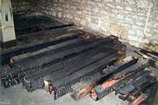 mit Hilfe der Zimmerleute, Fa. R. Bornemann aus Rosdorf, das Altarretabel mit der Kanzel ab, zerlegte es in seine Teile und nahm es, mitsamt den Priechen in seine Werkstatt. Die Kirche ist nun völlig leer. Nur der Altartisch, der aus Bruchsteinen aufgemauert ist, steht in dem kohlschwarzen Raum, durch dessen verrußte Fenster nur wenig Licht einfällt.