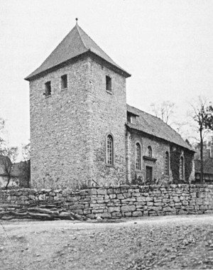 Die Kirche wird im Jahre 1254 erstmals urkundlich erwähnt. Wenn Teile des alten Baus noch existierten, so wären sie in dem trutzigen Turm zu suchen. Der heutige Kirchenraum ist in den Jahren 1747/48 an den Turm angebaut. Die Kirche ist nach Osten ausgerichtet. Die Eingangstür liegt in der Südseite. Ein Fenster in der Ostwand und je drei Fenster auf Süd- und Nordseite sowie ein Oberlicht über der Eingangstür sorgen für die Tagesbeleuchtung. Die Schallfenster im Turm sind nach Süden, Westen und Norden gerichtet.