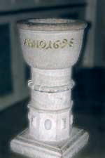 Der Taufstein weist auf das Jahr 1698 als Jahr der Herstellung. Er ist aus einem Block hellen Sandsteins gefertigt. Ein gleichartiger Taufstein aus dem Jahre 1697 steht in der Kirche St. Cosmas und Damian der Gemeinde zu Herberhausen, mit der Roringen unter einem Pfarramt verbunden ist.