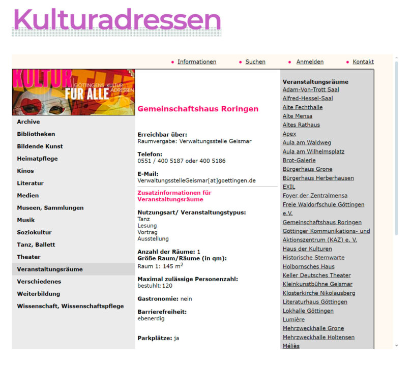 Kulturadressen der Stadt Göttingen, externe Seite >>